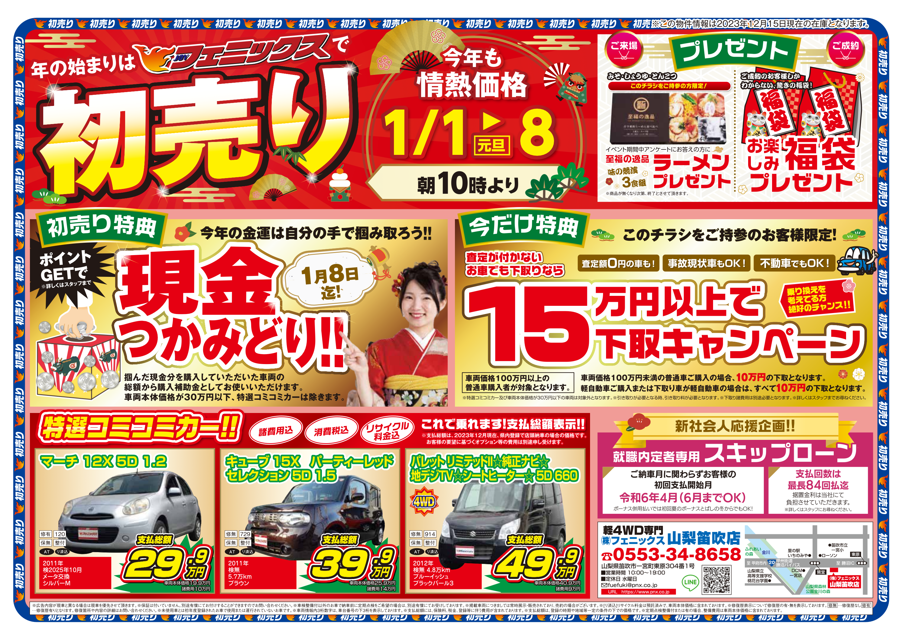 1月1日(月)AM10:00より”初売り” 初売り特典&ご来場・ご成約プレゼントのご案内